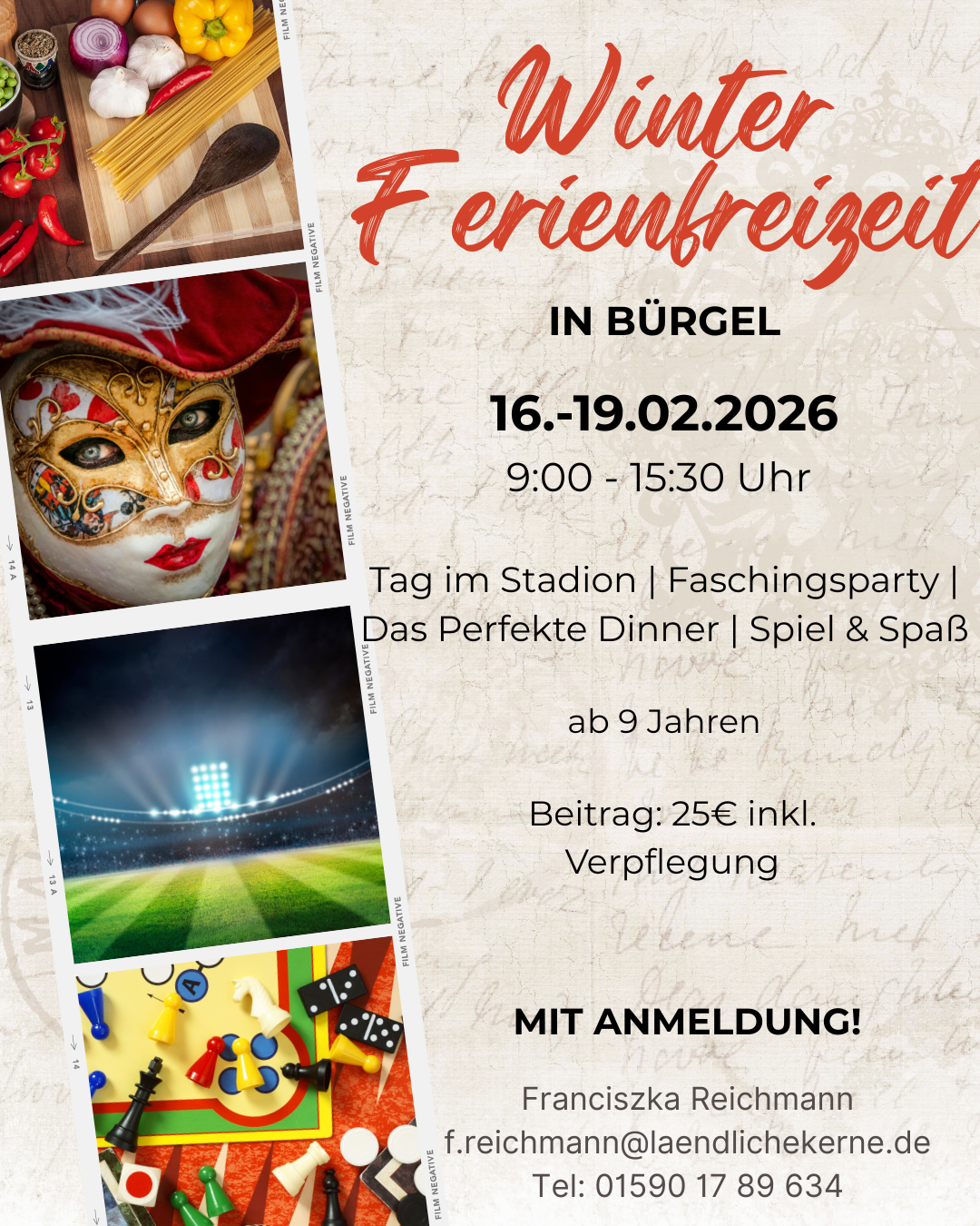 vom 16.02. bis 19.02.2026 bietet die Mobile Jugendarbeit der Ländlichen Kerne e.V. mit Unterstützung unserer Schulsozialarbeiterin Katja Büchel eine Ferienfreizeit mit tollen Aktionen an. Auf dem Programm stehen unter anderem ein Tag im Jenaer Stadion,eine Faschingsparty und gemeinsames Kochen bei einem Perfekten Dinner.